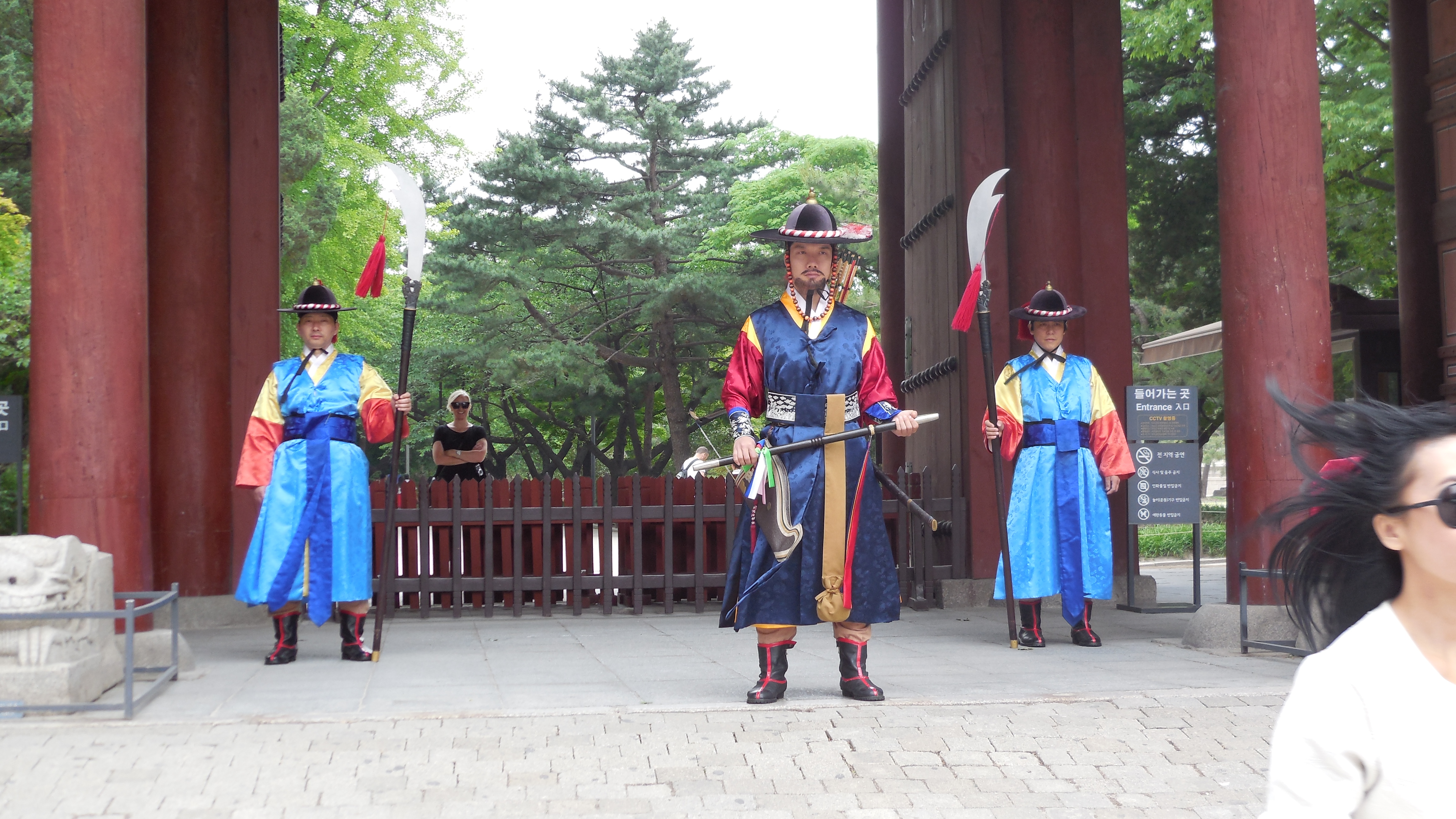 Sunday saw us venture across the river to the city centre and to Deoksungung Palace. An age-old historic palace originally built during the Joseon period, it sits amongst high rise buildings and cutting edge architecture. It is the only palace amongst all ancient palaces in Seoul to have a western-style garden, fountain and modern royal palace – a reflection of its place as a bridge between the middle and modern ages. The guide book says that the changing of the royal guard’s ceremony at the main gate – called Sumumjang -is one of the must-see sights of Seoul. We were an hour too early but the five costumed gents wielding swords and barely containing their boredom did little to entice us to hang around – and suggested that the Seoul guide book may, in fact, be selling its other attractions short.