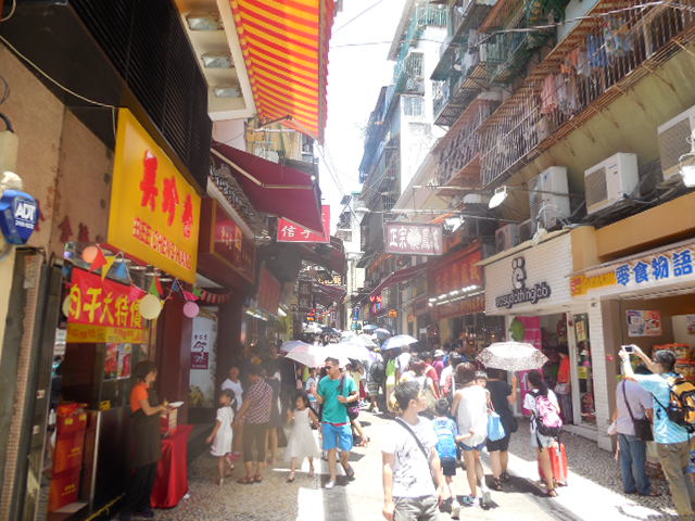 This may be the only place in the world where you can walk past a sprawl of traditional Chinese shops and temples, turn the corner, and find yourself amongst Portuguese-styled buildings. Pretty cool really.