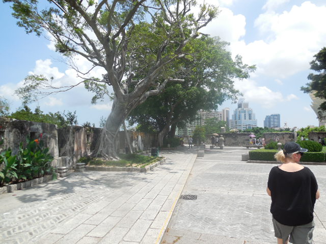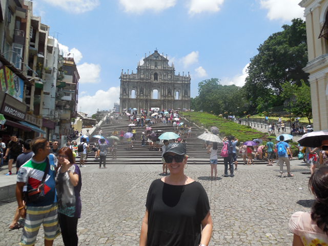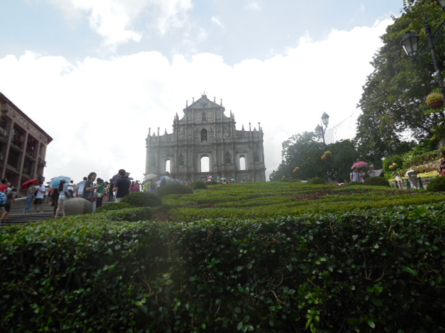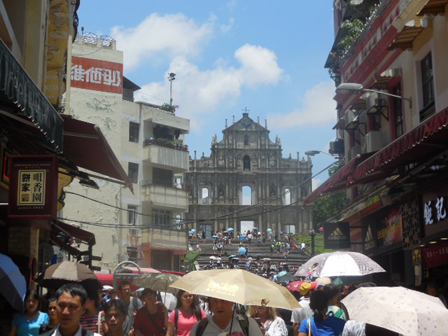 From the square, you follow the thousands of others (typically under an umbrella), walking the route to the Ruins of St Paul.