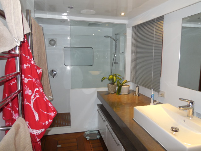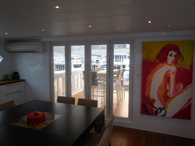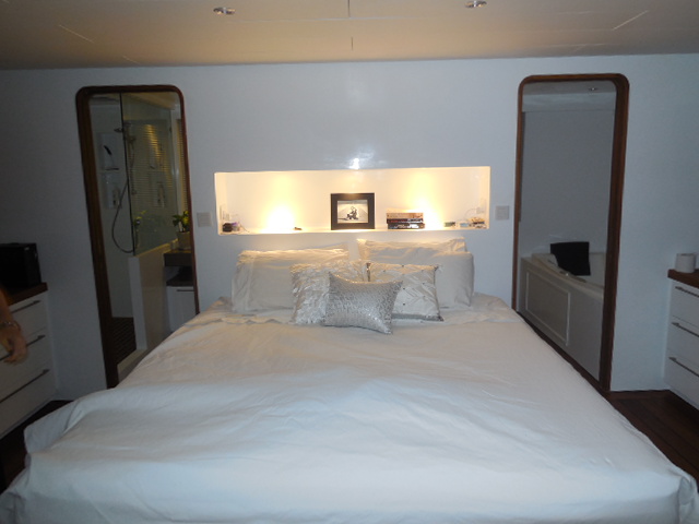 After an impressive tour of their floating digs, we sip French bubbles on the top deck and watch the sun set over the horizon.