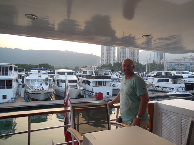 When you take the ferry from Pier 3 in Central to Discovery Bay, it’s perfectly normal, apparently, to have a drink at the small bar and take one on the ride. When in Rome we say!