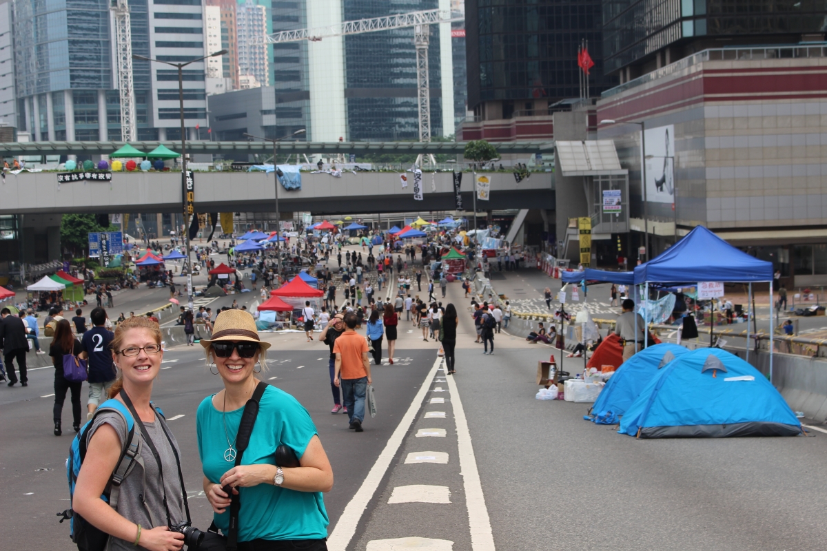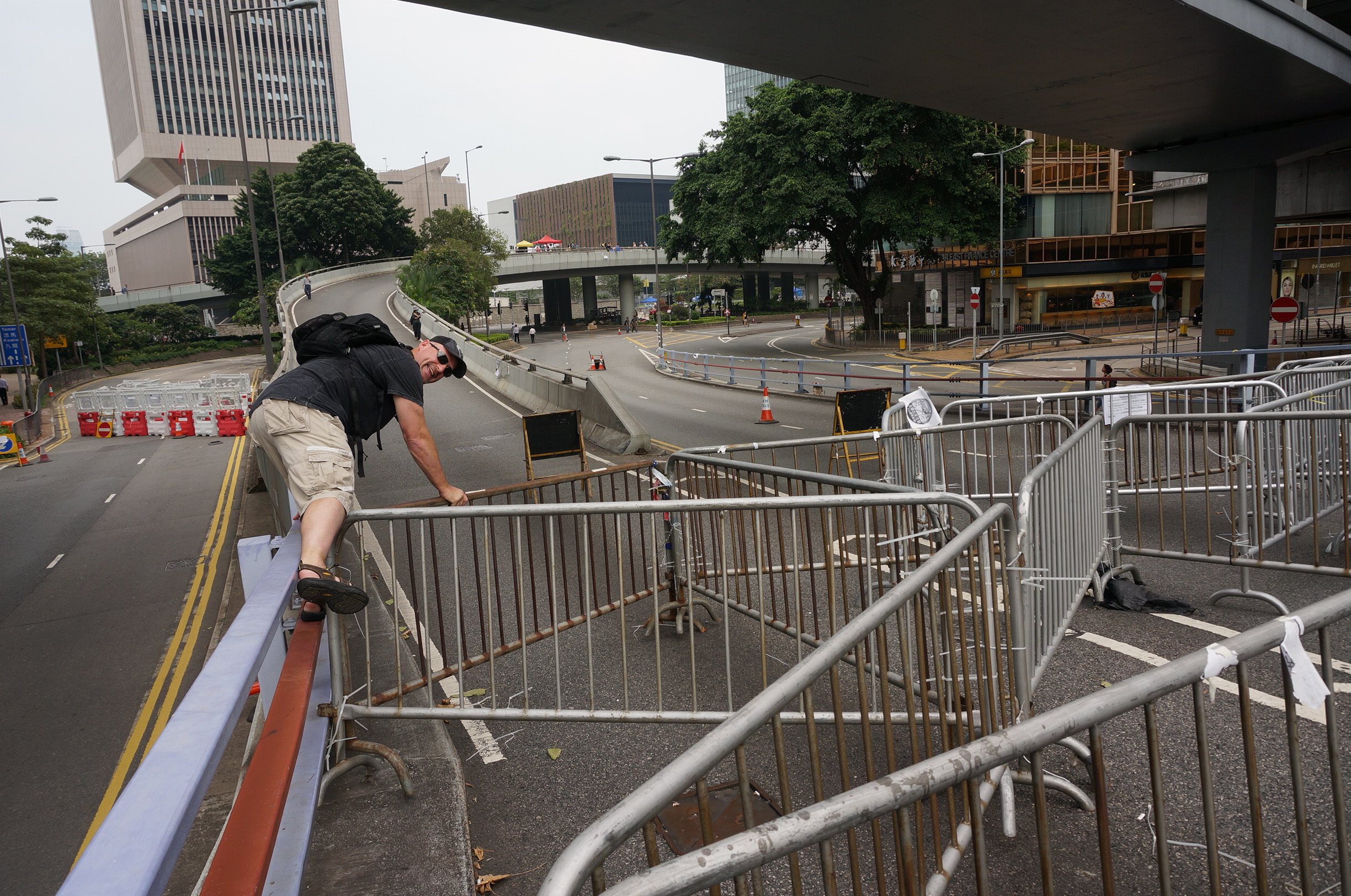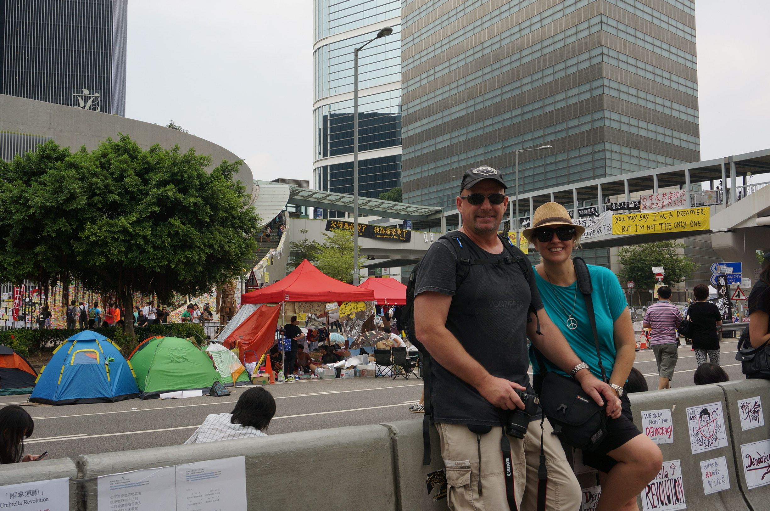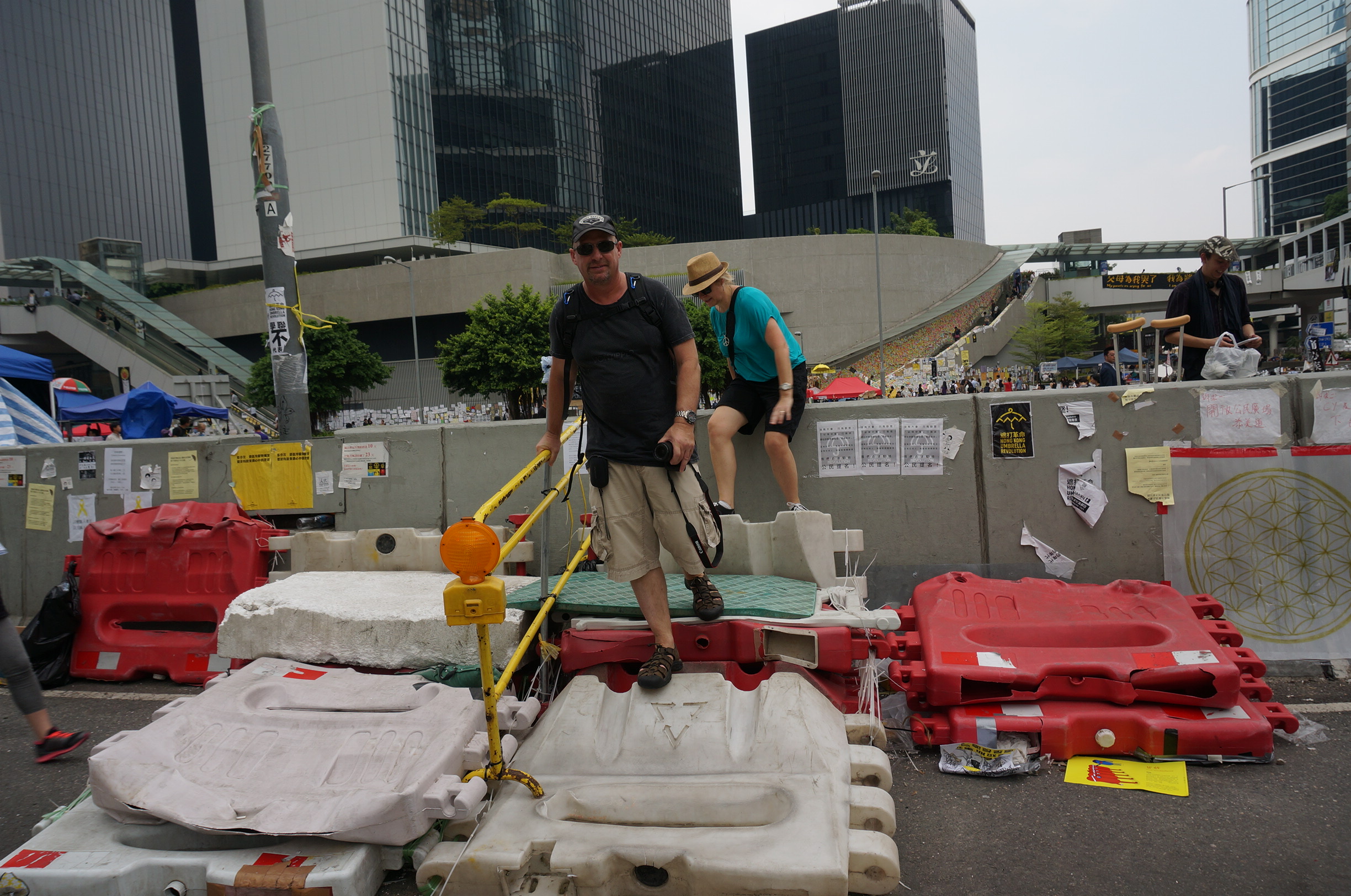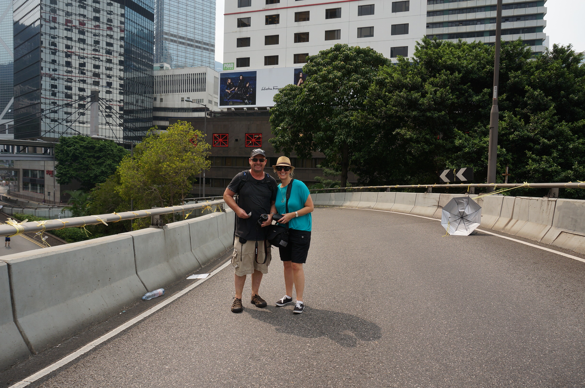 It is rather surreal to walk major city streets with no vehicles. Climbing barricades, we make our way to the Admiralty protest site. More are based here, although nothing like the numbers we’d seen on the news the week before. (By Friday night, however, the numbers have swelled again to fill the entire area).