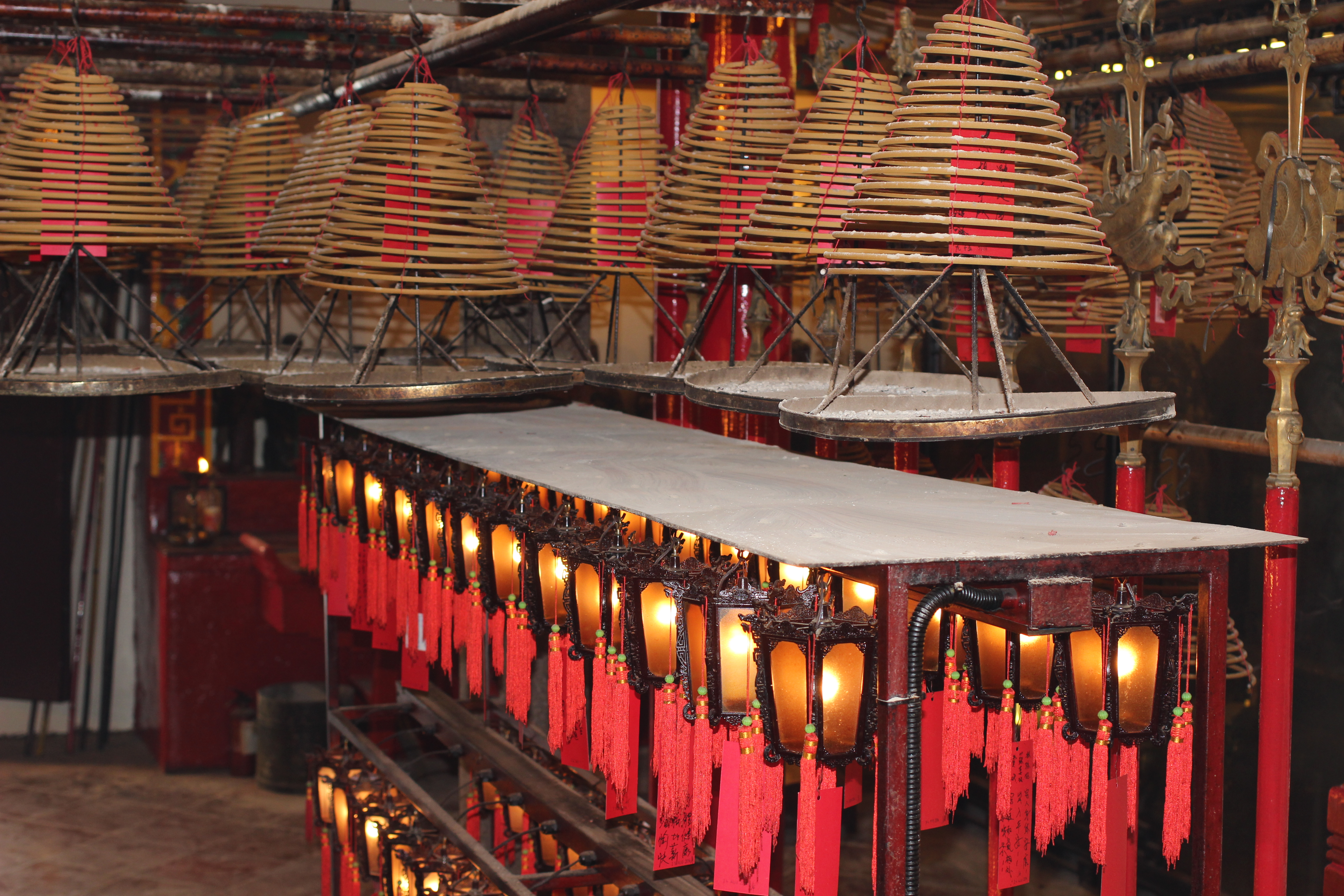 We wander along Hollywood Road from here and discover great little parks tucked away behind the street, and where old men play cards and mah-jong under the shade of large trees. We also find the quaint Man Mo temple.