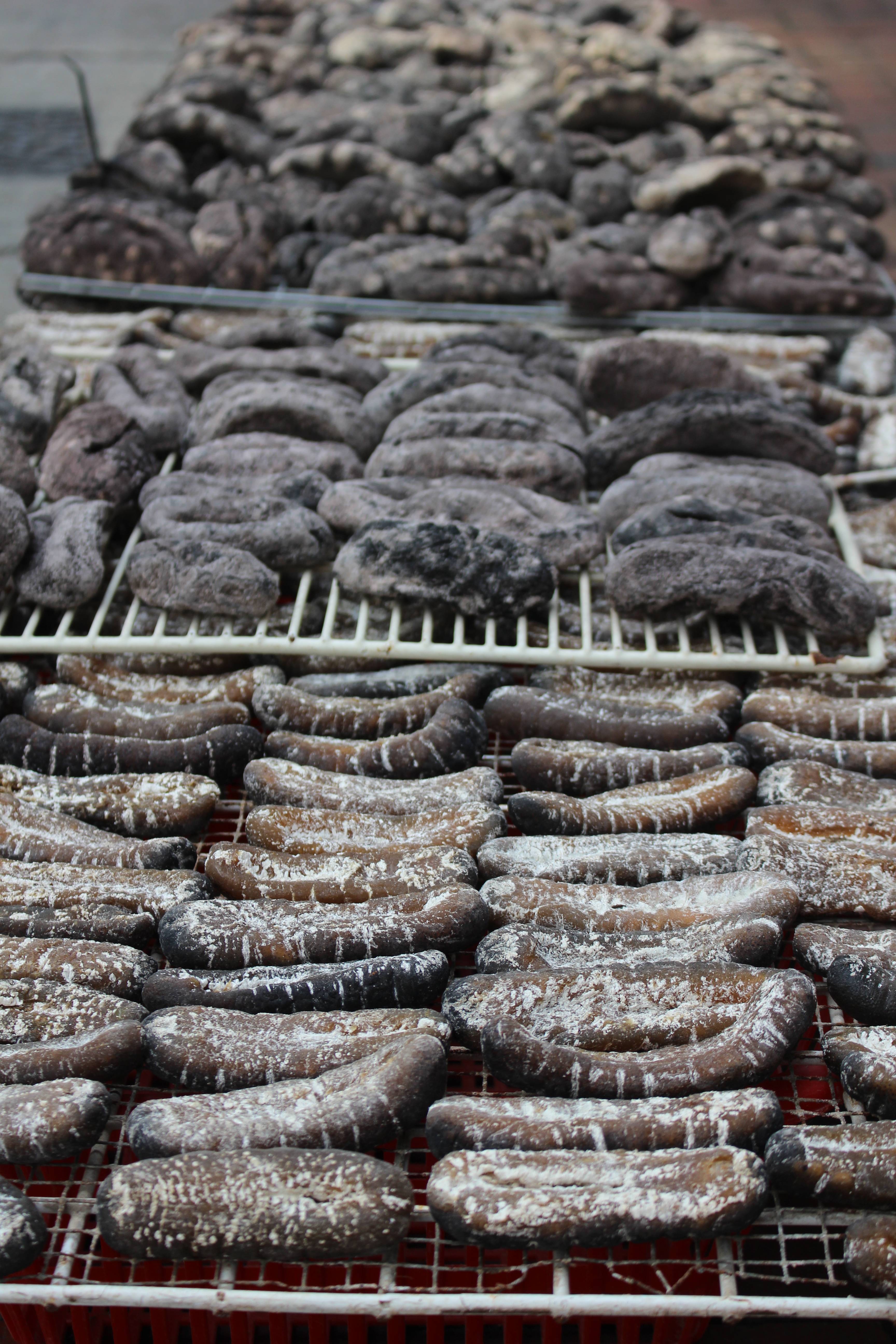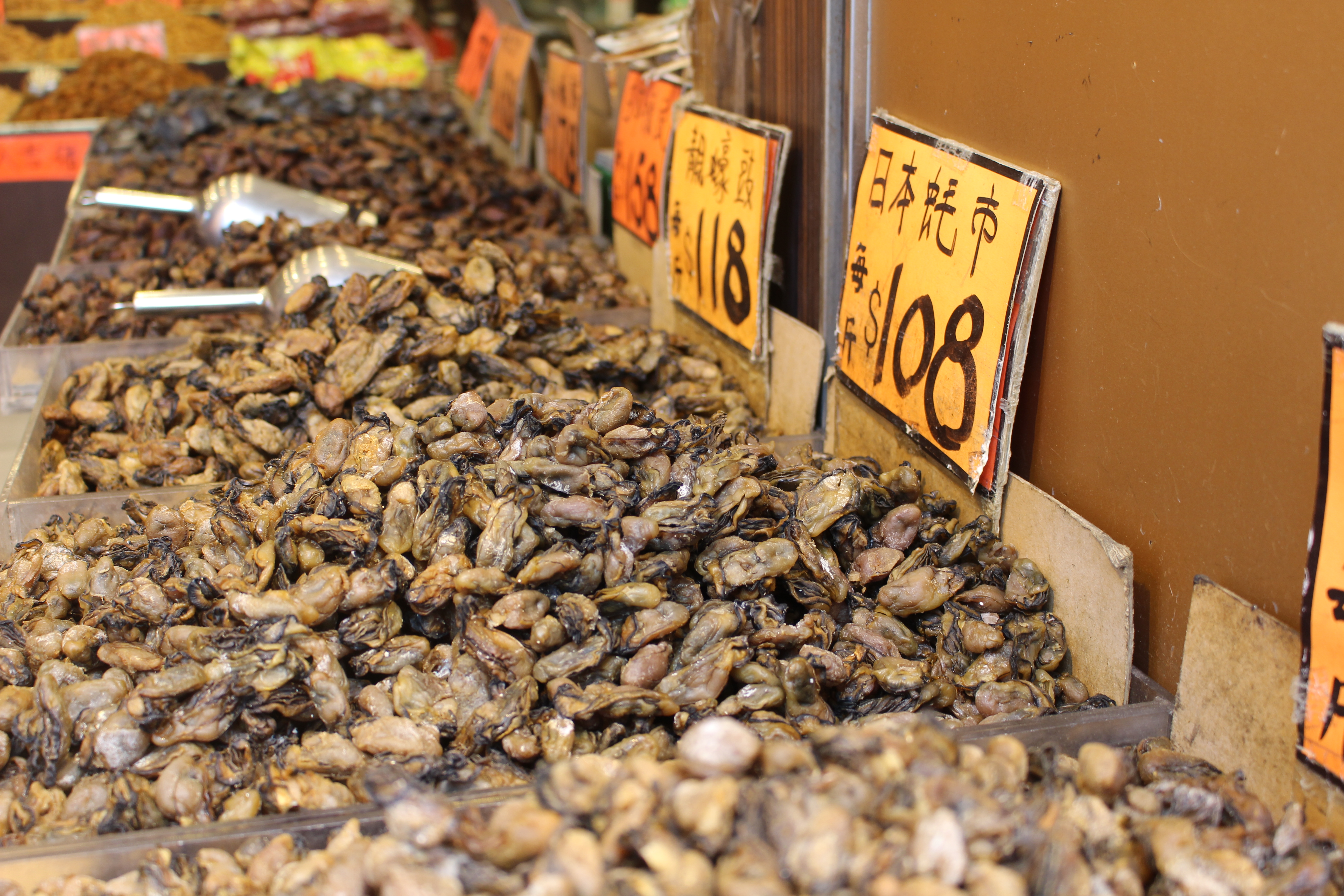 Walking along Wing Lok Street, we learn about certain food delicacies in the shops, like bird’s nests, shark fins and dried seafood. I had always thought that the bird nests you find in Chinese cooking was made of deep fried noodles. Not so. It is actually made from the saliva of the bird and are about $500+ per small nest. Gross just moved to a whole other level.