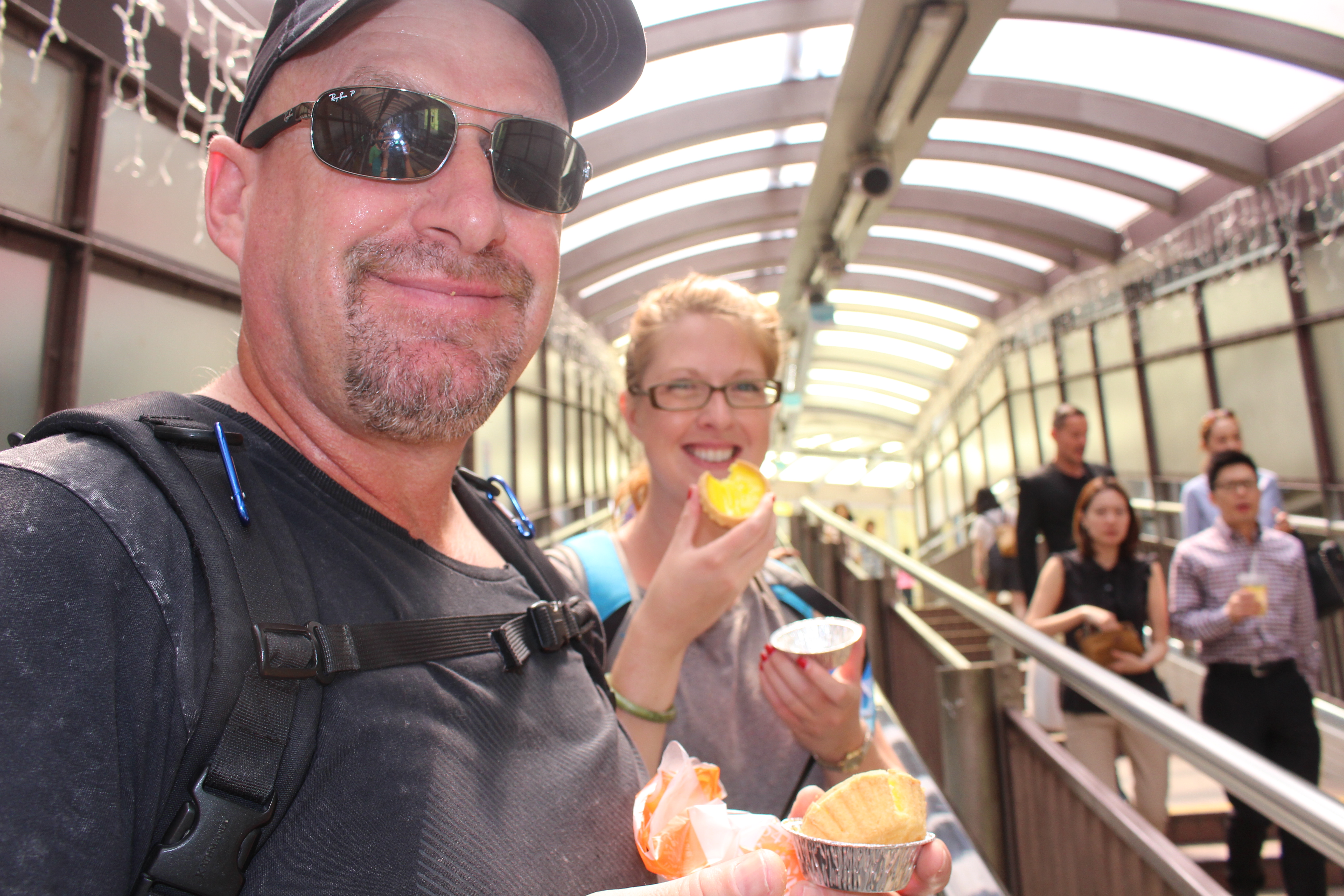 Walking down and around the back of the old Victoria Prison (also now under development), we munch on egg tarts from Tai Cheong Bakery as we make our way onto Wyndham Street and to the Peak Tram. I had no idea it climbs the hill at such an acute angle. The view from the top is spectacular though and a must-do in Hong Kong.