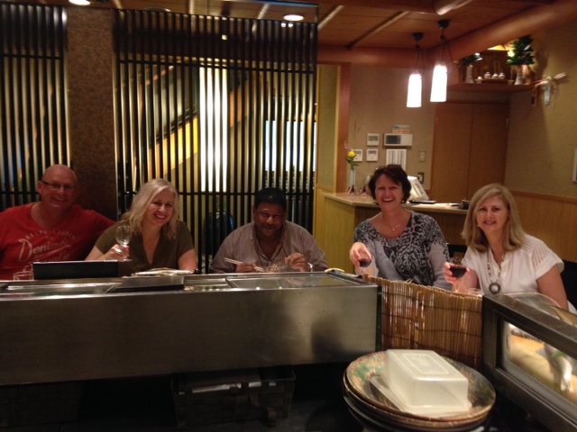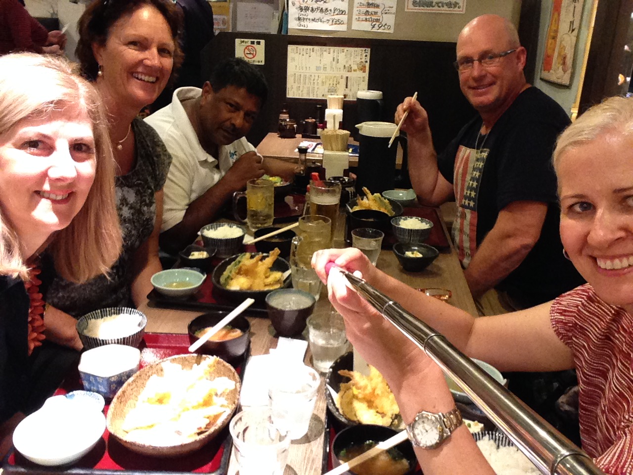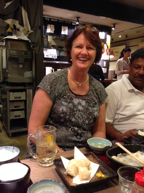 We find ourselves eating another round of rice, dumplings and tempura with beers for the boys and Saki for Ann-Marie and me.
